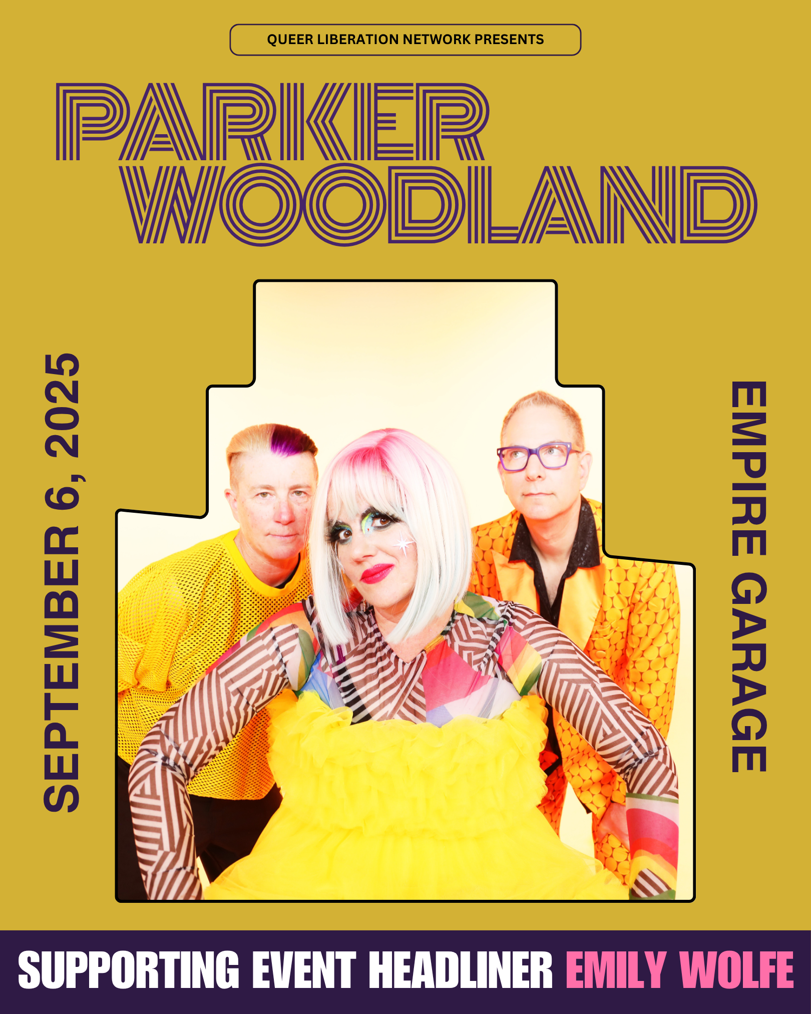 ADVANCE TICKETS SUPPORT THE EVENT! GET YOURS NOW FOR SEPT. 6 W/ EMILY WOLFE & PARKER WOODLAND, BENEFITTING QUEER LIBERATION NETWORK.